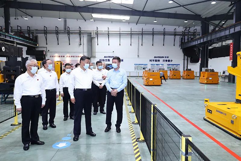習近平17日在沈陽市考察調研。當天下午,他來到沈陽新松機器人自動化股份有限公司。在企業展廳,習近平聽取遼寧新時代東北振興整體情況介紹,察看遼寧先進科技產品集中展示,并考察了新松公司生產經營、自主創新情況。企業生產車間內,工業機器人、協作機器人、特種機器人等正在進行測試。習近平向技術人員和企業職工詢問企業開展核心技術攻關等情況,對企業自主創新和產業化發展取得的成績予以肯定,表示新松公司體現了中國速度、中國水平。