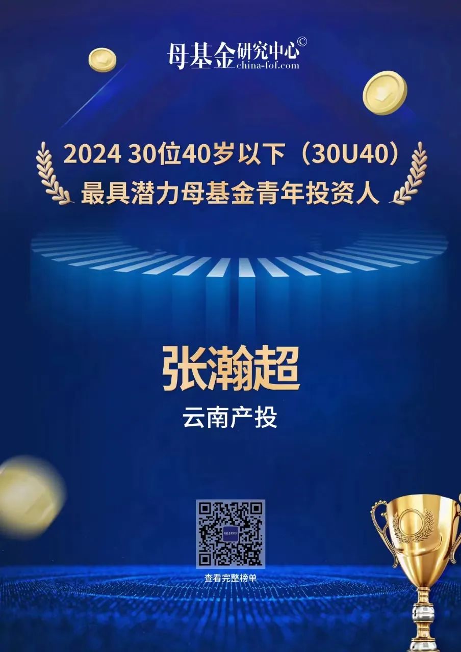 “五四”青年節之際,中國母基金研究中心評選出“2024優秀青年投資人榜單”,集團旗下云南產投公司投資經理張瀚超榮登“最具潛力母基金青年投資人Top30榜單”。