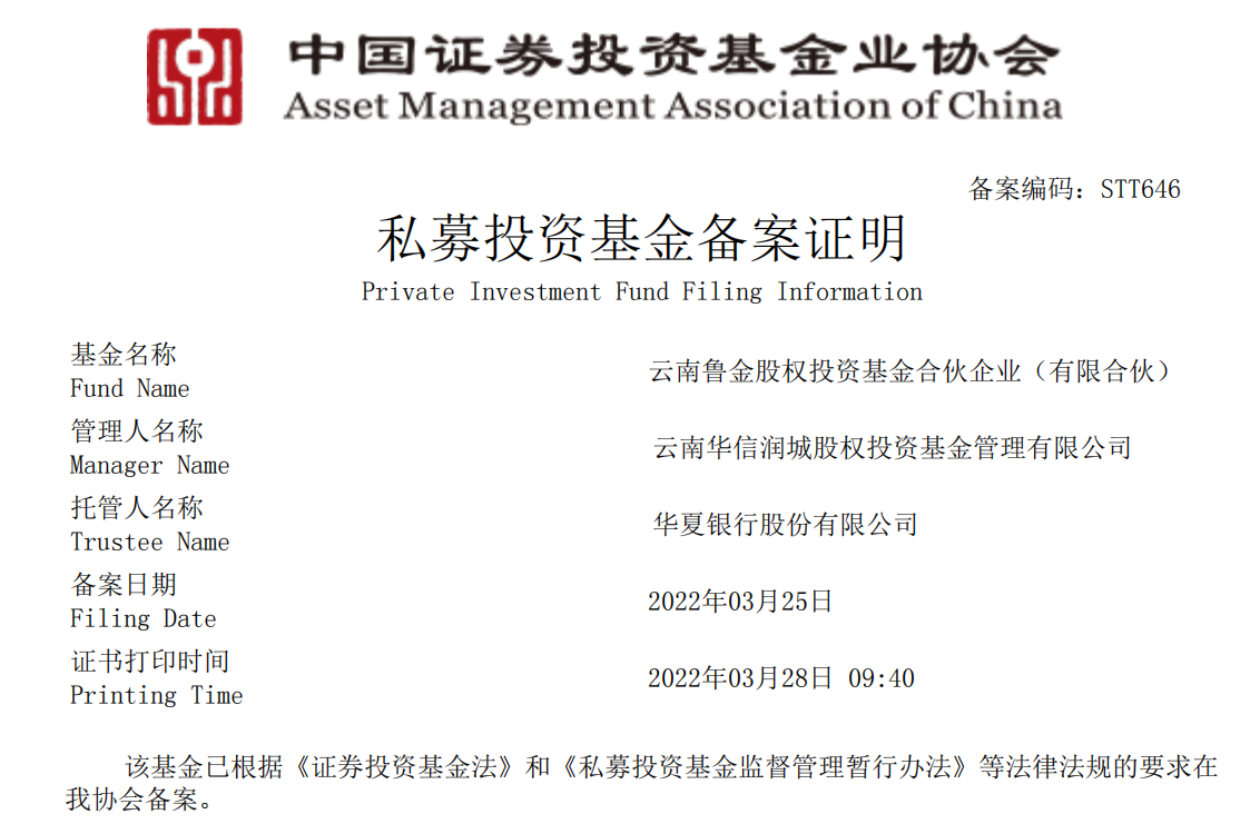 2022年3月,云南魯金股權投資基金合伙企業(有限合伙)(下稱“魯金基金”)成功完成中國基金業協會備案,實現了云南產投公司引入省外頭部國資投資機構管理基金落地云南“零”的突破。魯金基金是云南產投公司作為有限合伙人聯合魯信創業投資集團股份有限公司(下稱“魯信創投”)、深圳瞻天潤元投資合伙企業(有限合伙)共同發起設立并在云南落地注冊的創業投資基金。基金主要圍繞生物醫藥、醫療健康行業具有發展潛力的優質未上市企......