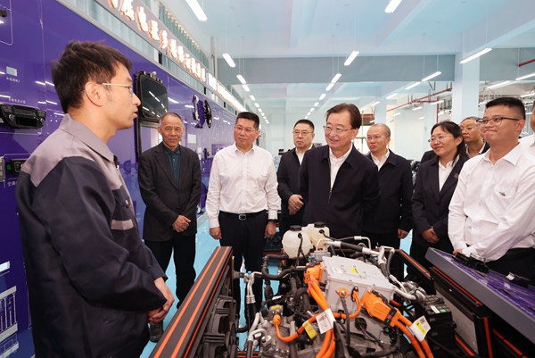 9月24日,王寧在昭通職業學院調研職業教育發展時,與智能制造學院新能源汽車教學實訓室師生交流。