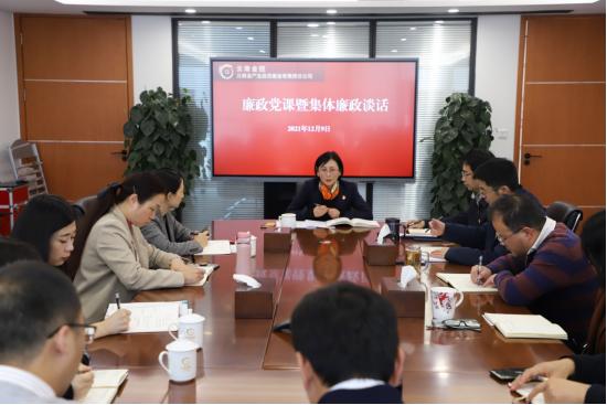 ?2021年12月9日,集團黨委委員、副總裁蔡瓊同志為集團戰略投資部、審計風控部及產投公司講授廉政黨課,并對產投公司班子成員、中層干部開展廉政談話。