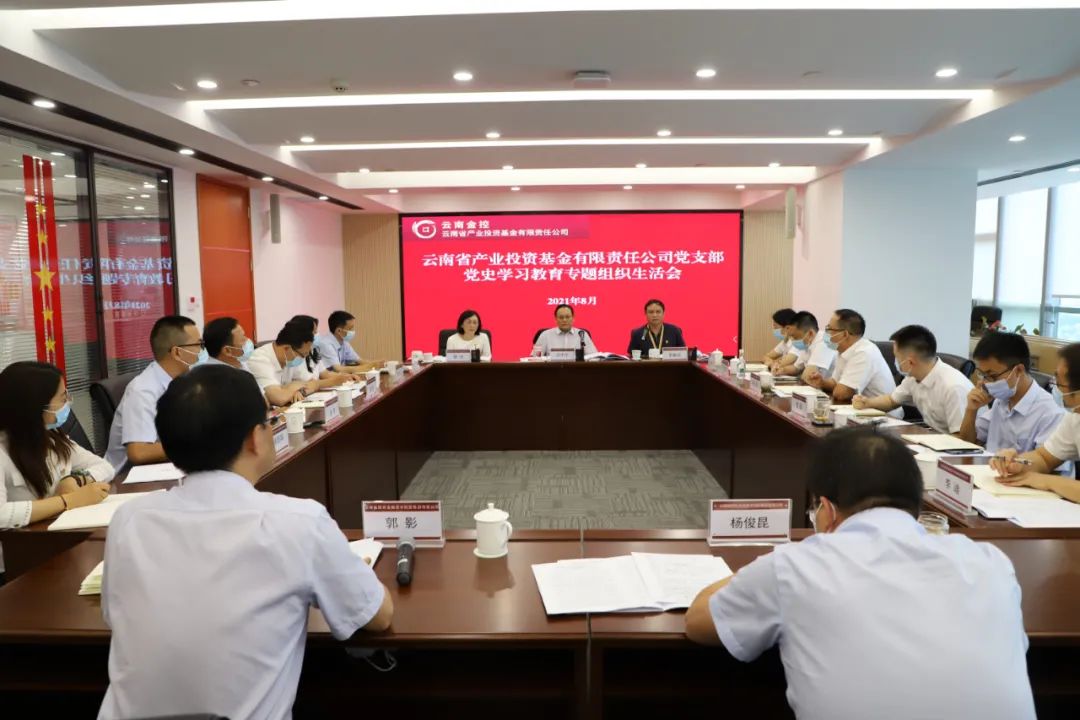 按照中央、省委和集團黨委關于在黨史學習教育中召開專題組織生活會的通知要求,云南省產業投資基金有限責任公司黨支部于8月9日下午召開黨史學習教育專題組織生活會。集團黨委書記、董事長遲中華,集團黨委副書記、工會主席李根斌,黨委委員、副總裁蔡瓊出席會議并作指導。