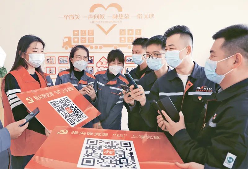 ?2022年11月15日,在山東省東營市的東營區化工產業園區“紅運家”紅領驛站,非公企業黨員掃描“指尖微黨課”二維碼學習黨章等知識,推動黨的二十大精神和《中國共產黨章程》深入人心、落地生根。人民圖片 劉智峰/攝