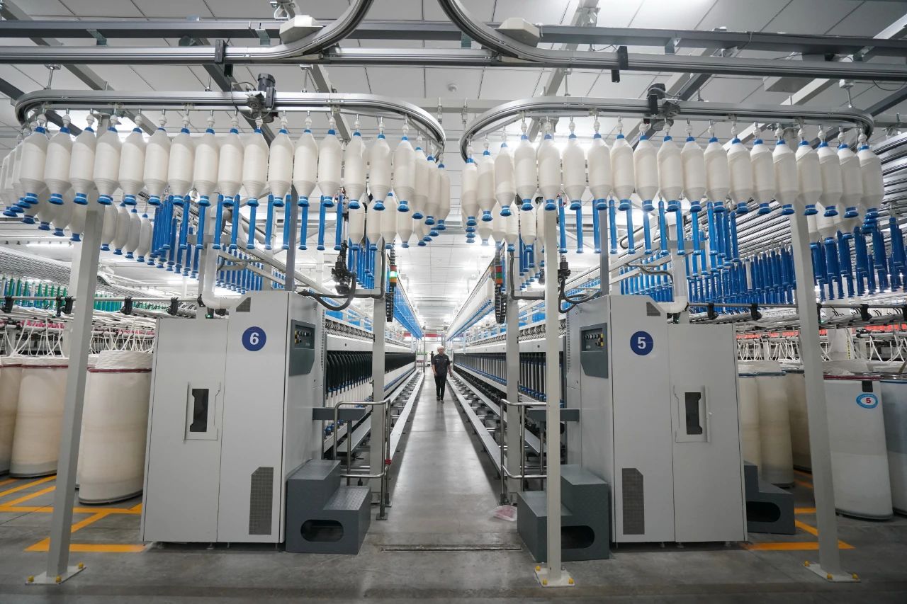 圖為2025年4月5日,位于江蘇泰州市姜堰區的一家紡織企業的智慧化紡紗工廠生產場景。新華社記者 季春鵬/攝