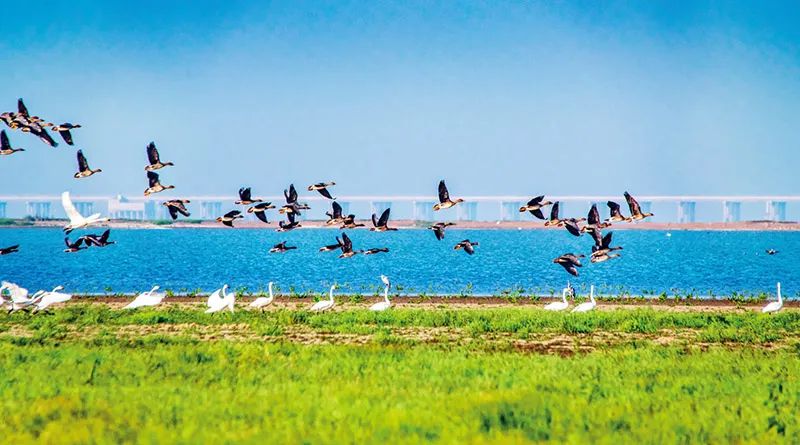 ?江蘇積極創建全國生態文明試驗區,進一步提升生態環境治理現代化水平。圖為2022年10月30日,南京市溧水區石臼湖畔迎來首批天鵝、鴻雁、鶴鷸等珍稀鳥類安家越冬。 視覺江蘇網供圖 朱紅生/攝
