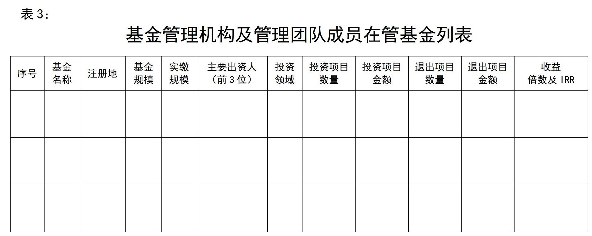 ? ? ??(五)機構已管理基金及過往投資案例情況(表2、表3);