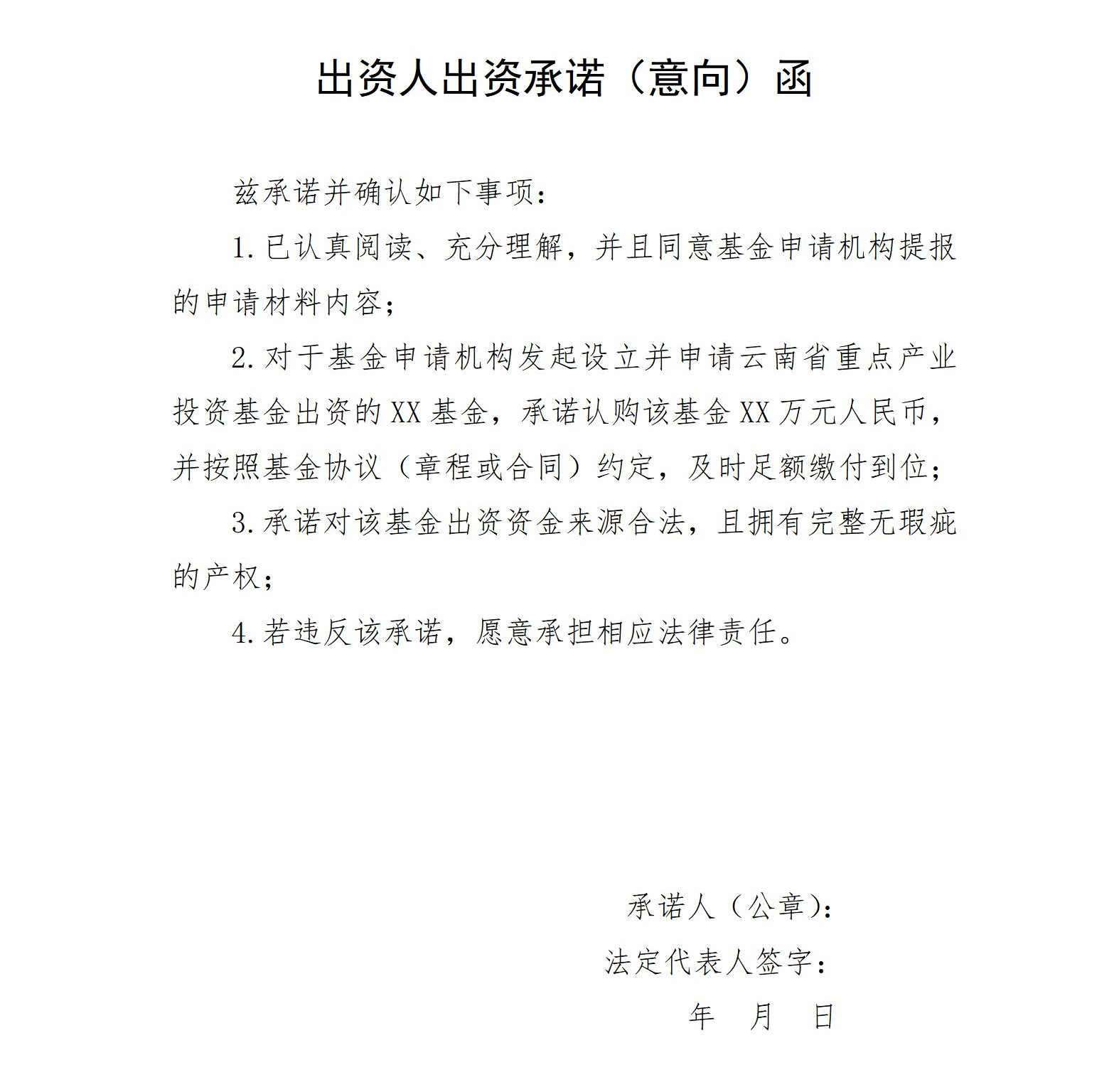 ? ? ??(二)申報事項。各行業主管部門、地方政府按照《產業基金申報指南》(見附件)的要求,向云南金控集團或其指定的省重點基金管理人提交申報設立產業基金文件,包括產業基金設立方案、基金管理人情況、基金章程或協議草案、出資人出資意向及出資能力證明等相關材料。